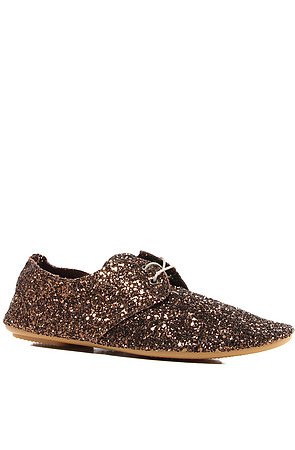 Anniel Women's The Derby Shoe. The Anniel Derby Shoe in Large Bronzo Glitter  Glittery oxford style shoe with front lacing and low profile rubber sole brought to you from Italy By Anniel the maker of fine dance shoes.  Flat shoe Front laces Covered with glitter Soft as bare feet Rubber soles Fabric body Imported By Anniel By Anniel Approximate Size Conversion (this shoe comes in whole sizes only): 35 (EUR) = 5 (US) 36 = 6 37 = 7 38 = 8 39 = 9 40 = 10 .