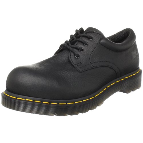 This is classically styled Dr. Martens industrial footwear. It has heat sealed stitch welted construction with patented air cushioned soles. The full grain leathers and superior lining provide the highest levels of comfort and durability. This shoe features a steel safety toe cap, a shock absorbing air cushioned sole, a slip-resistant outsole, and additional insulation from the ground to help protect the wearer from accidental contact with an electrical charge.