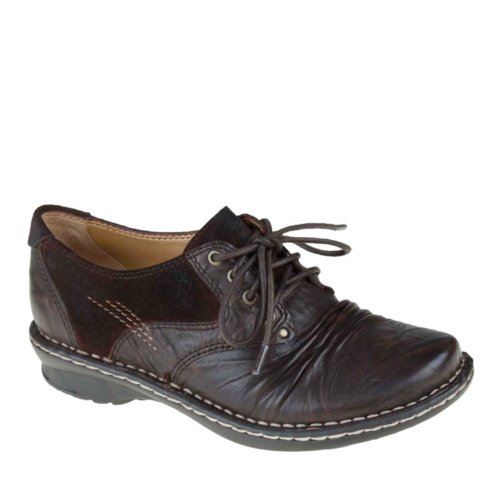 Classically-decorated, with vintage crinkled leather and textured forefoot ruching, the Earth Linden oxford-inspired women's lace-up cushions and supports each step of your day.This vintage-inspired women's flat shoe features a burnished, full grain leather and suede upper and a lace entry for a customized fit. The amply padded footbed offers the all-day comfort of multi-density cushioning with a little extra in the heel, as well as along the arch. The sculpted profile of the polyurethane heel and sole gives a lift to the menswear-inspired details of the Earth Linden casual shoe.