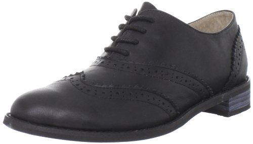 The shoes are a little masculine in looks (think your granddad's oxfords) but I'm enjoying the juxtaposition of wearing them with a girlie skirt and tights. They tend to be a tad wide even with socks - the laces meet across the top of my medium width foot. Otherwise the fit is true and the shoe is comfortable. The color of the heal is lame. It looks like black magic marker instead of the rich and deep black leather of the shoe upper. Even so, I like my new kicks.