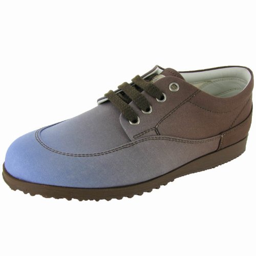 Hogan by Tod's Women's HXWE48SU350 Oxford. These oxfords feature a blue fading into brown color and a lace-up style. They also feature a fabric upper and a man made sole with a 1 inch heel.