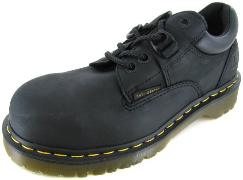 Protect your feet with Dr. Martens Lace-up Steel Toe Oxfords. Now at BIG SAVINGS! Are boots more than you need for safety protection? These Oxfords are a lightweight, comfortable alternative. Dr. Martens has been making high-quality work shoes for decades. These shoes have great style and protection with steel toes and electrical hazard rating. The slip-resistant HUD soles give you sure footing on the job. Of course, they have the trademark Dr. Martens lug sole and yellow stitching. Made of genuine full-grain leather in two styles: Black Industrial Greasy leather has an oiled feeling and robust nature; Gaucho Volcano waxy leather offers water-resistant properties. Other features: Patented AirWair PVC air-cushioned outsole with 90 degree heel; Static dissipative for static sensitive work areas; Contoured, full-cushion insole for long-lasting comfort; Half insole and full quarter and vamp lining; Padded collar for extra comfort; Each weighs approx. 31 ozs. Don't miss your chance at BIG savings! State Color and Size. AVAILABLE SEPARATELY: Men's Dr. Martens Lace-up Steel Toe Oxfords - word search in our Store for 'Dr. Martens'. Women's Dr. Martens Lace-up Steel Toe Oxfords